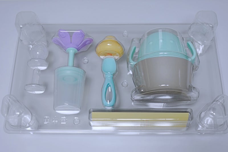 다른 수저를 손에 넣으면 먹을 때 목을 찌르는데, 리베베 수저에는 프로텍터가 있어 찌르는 것을 방지하고 안심하고 아이의 손에 쥘 수 있다.