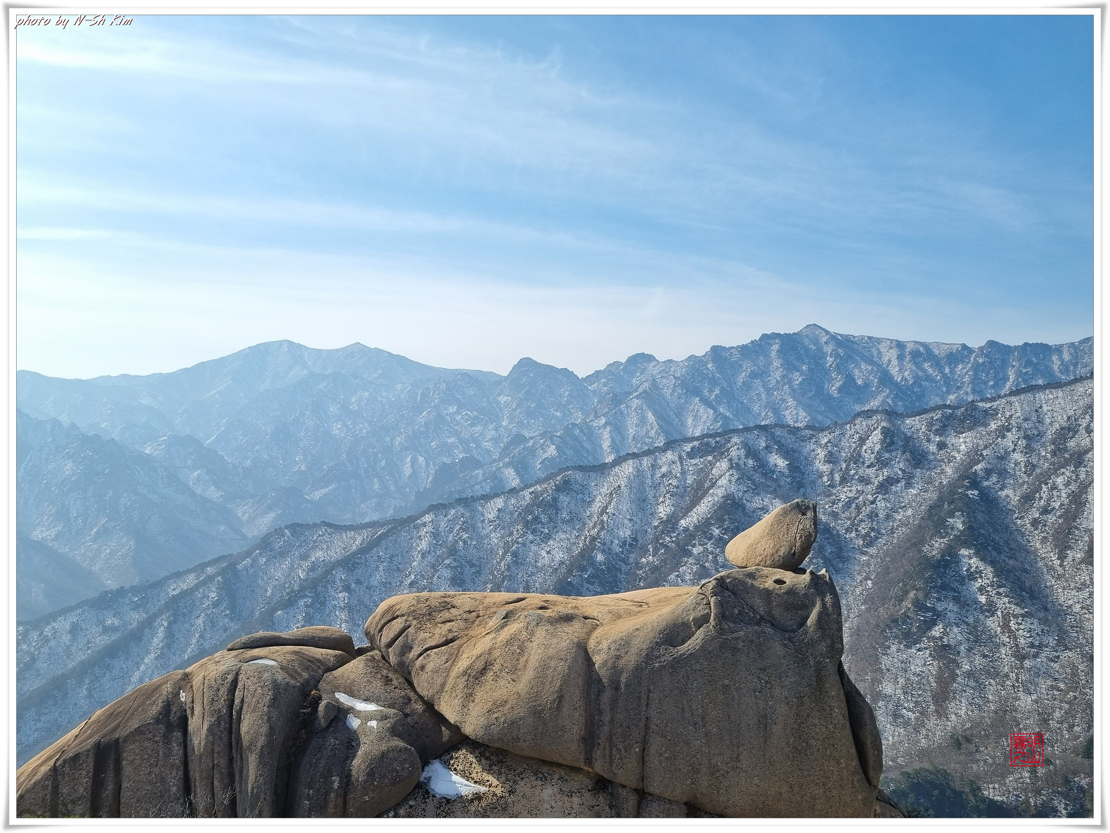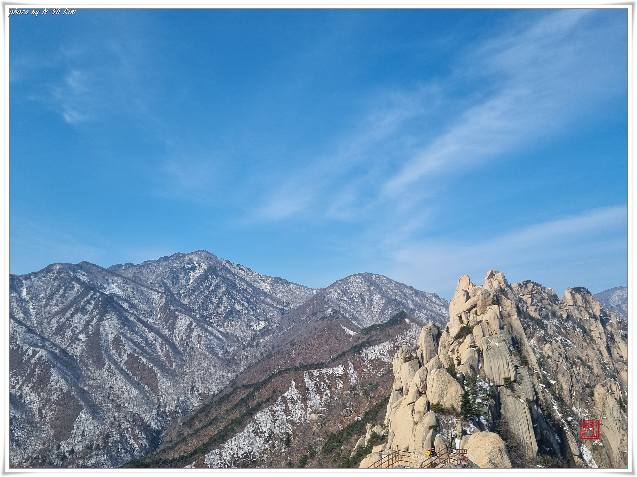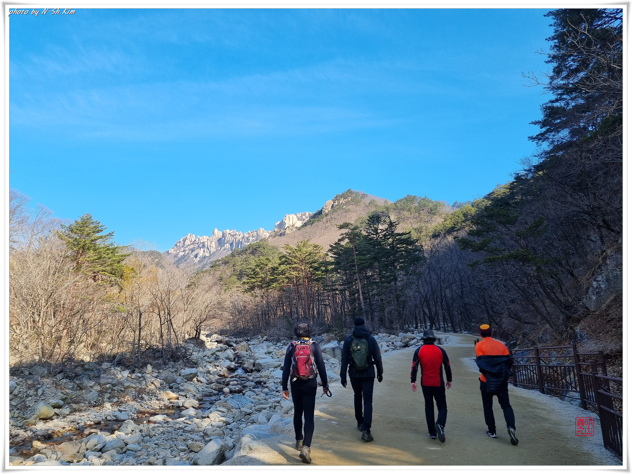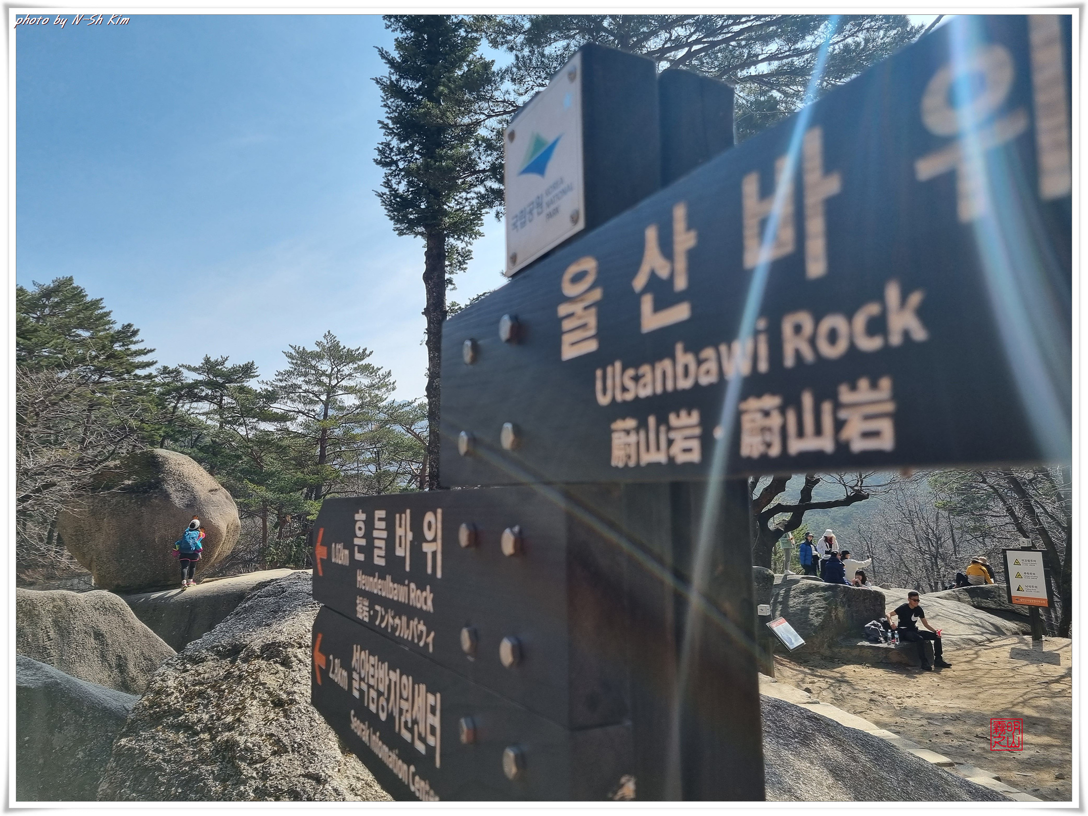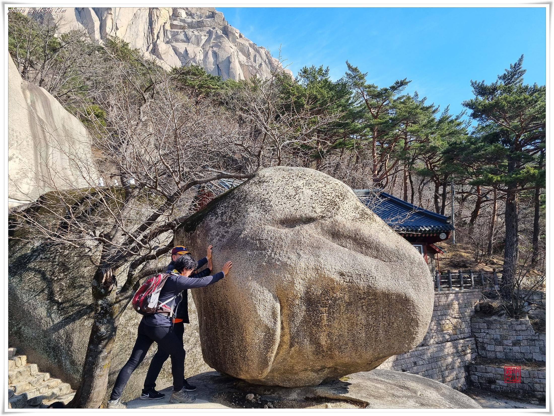 깊은 계곡도 아니고 길이 아니라서 여유로운 발걸음으로 울산바위의 또 다른 모습을 보여드리기 위해 잠시 내원암에 들렀다가 또 다른 중간 기착지인 락킹바위에서 잠시 휴식을 취합니다.
