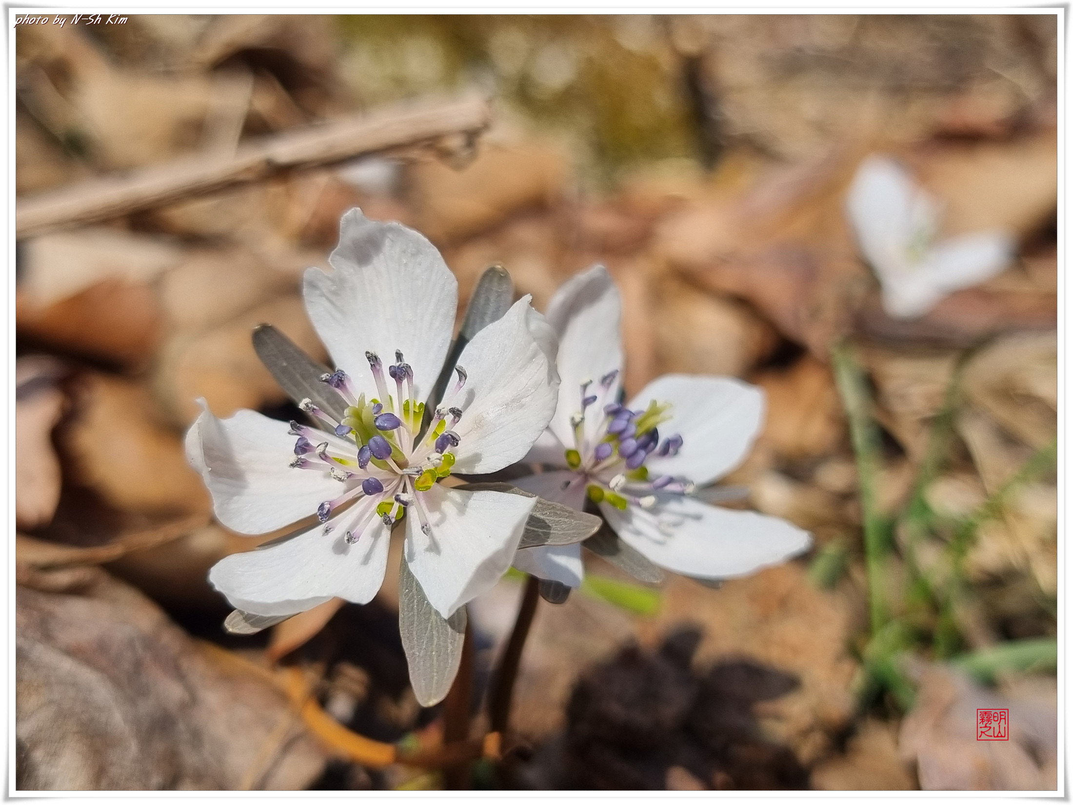만나려고 했던 녀석의 정확한 위치를 알 수 없기에 주위를 둘러보던 중 작년에 만났던 노루귀가 천천히 군락을 이루고 있는 모습을 포착하고, 또 다른 진사에게 오늘의 주인공이 어디 있는지 묻고, 마침내 그를 만난다.